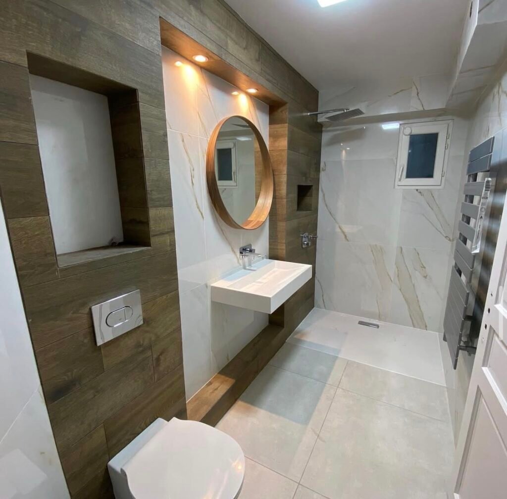 Mobilier de Cuisine et Salle de Bains : Transformez votre espace culinaire et votre salle de bains en véritables havres de paix. Pour la salle de bains, découvrez nos meubles conçus avec soin, disponibles sur mesure ou fournis par nos partenaires, alliant fonctionnalité et esthétique pour répondre à vos besoins spécifiques. Quant aux meubles de cuisine, ils sont toujours réalisés sur mesure, garantissant ainsi une adaptation parfaite à votre espace et à vos exigences.
